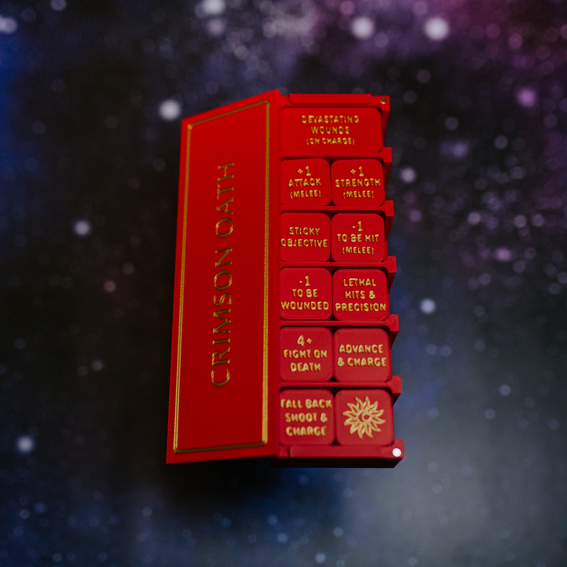 Each Angelic Sanguine Brothers set includes a purpose-built magnetic storage box designed specifically for these 80 tokens. The secure magnetic closure keeps your tokens organized during transport and ensures quick access during gameplay - no more hunting for the right divine effect mid-battle!