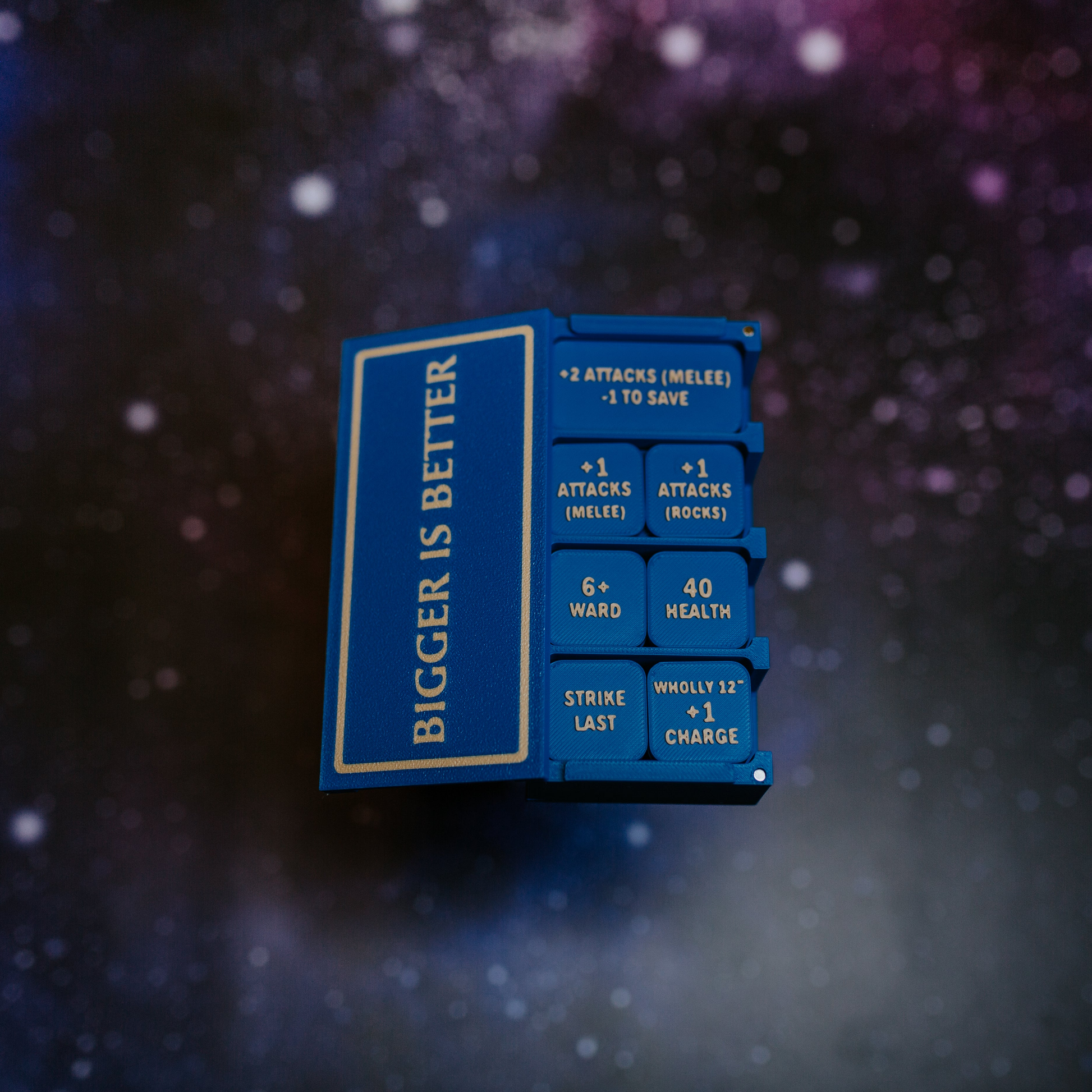 Each Behemoth Sons set includes a purpose-built magnetic storage box designed specifically for these 37 tokens. The secure magnetic closure keeps your tokens organized during transport and ensures quick access during gameplay - no more hunting for the right monstrous ability mid-battle!