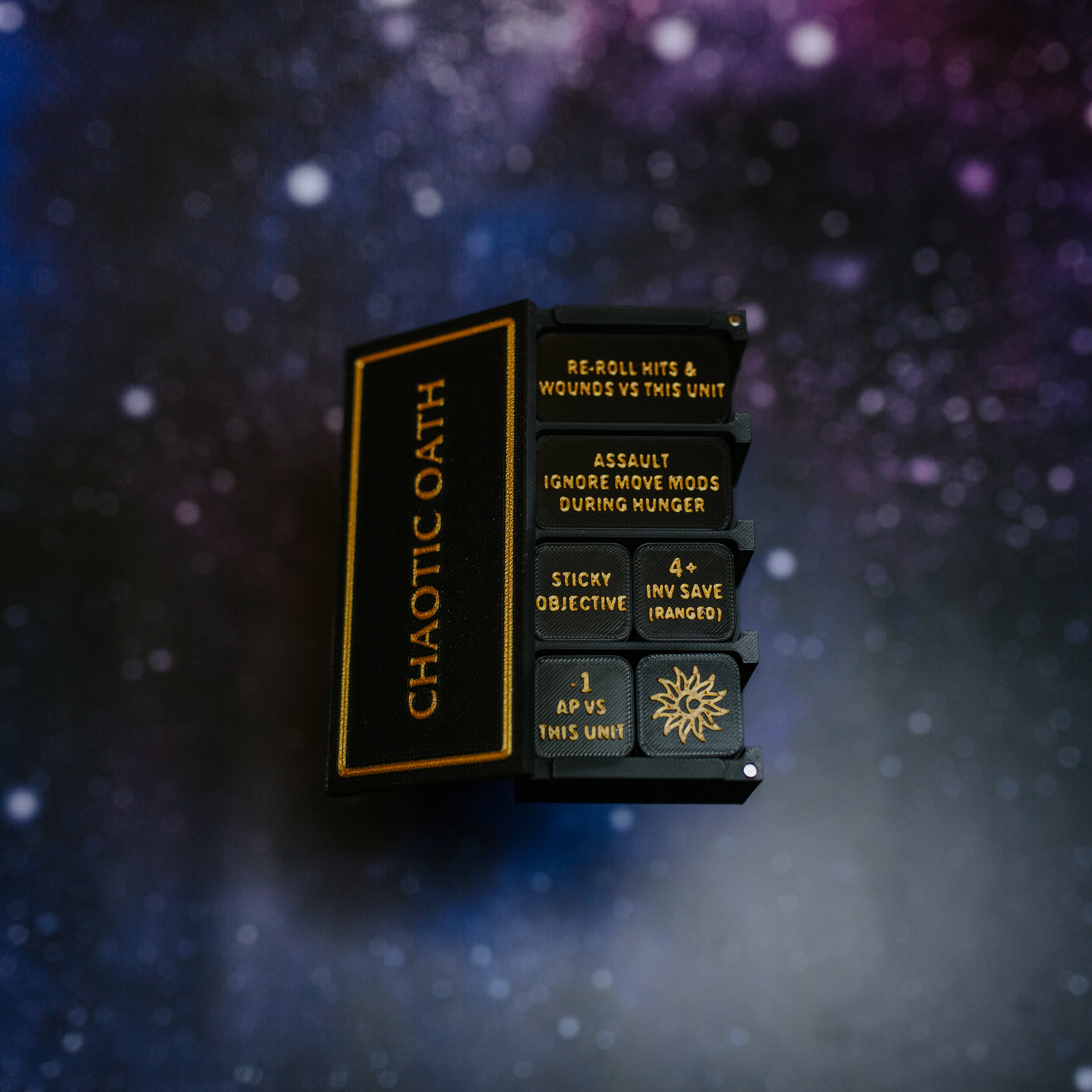 Unleash the powers of the warp with this comprehensive 58-token set designed for chaotic daemon armies. Track infernal abilities, corruption effects, and daemonic powers as your otherworldly forces bring chaos and terror to the battlefield.