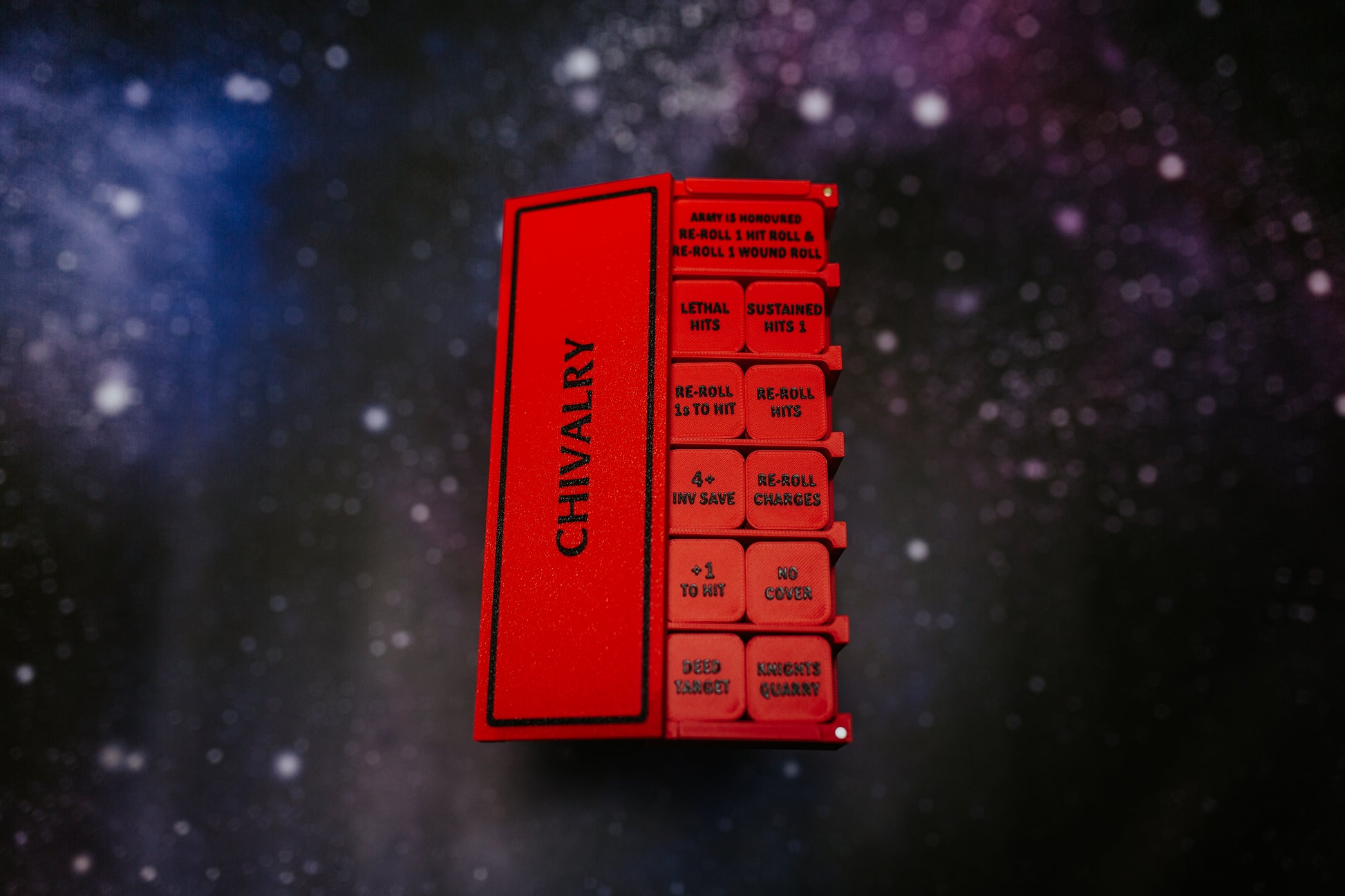 ✓ Combat modifiers (+1 to Hit, Re-roll Hits, Re-roll Charges)