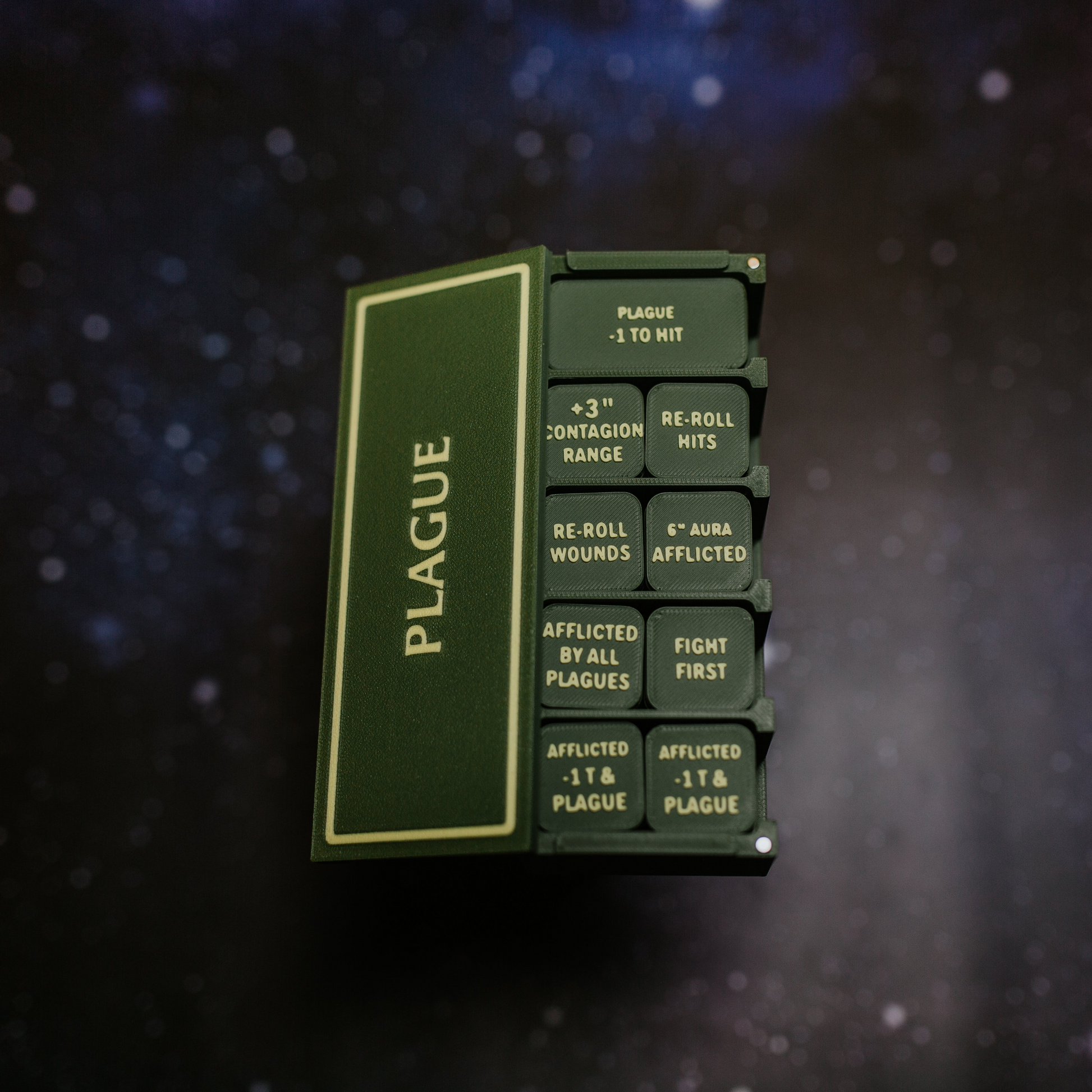 Each Plague Guard set includes a purpose-built magnetic storage box designed specifically for these 66 tokens. The secure magnetic closure keeps your tokens organized during transport and ensures quick access during gameplay - no more hunting for the right token mid-battle!