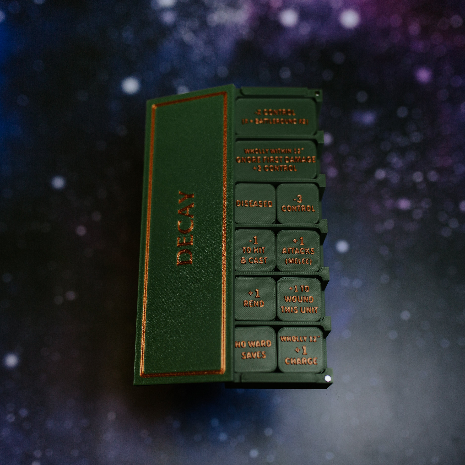 These products are independently designed and created for use with a range of tabletop miniature wargames. They are not affiliated with, endorsed by, or intended to replace any official products from any specific game company. These tokens are intended to assist players in tracking in-game effects and statuses, similar to using markers or notes. Rulebooks and other official game materials are still required for gameplay.