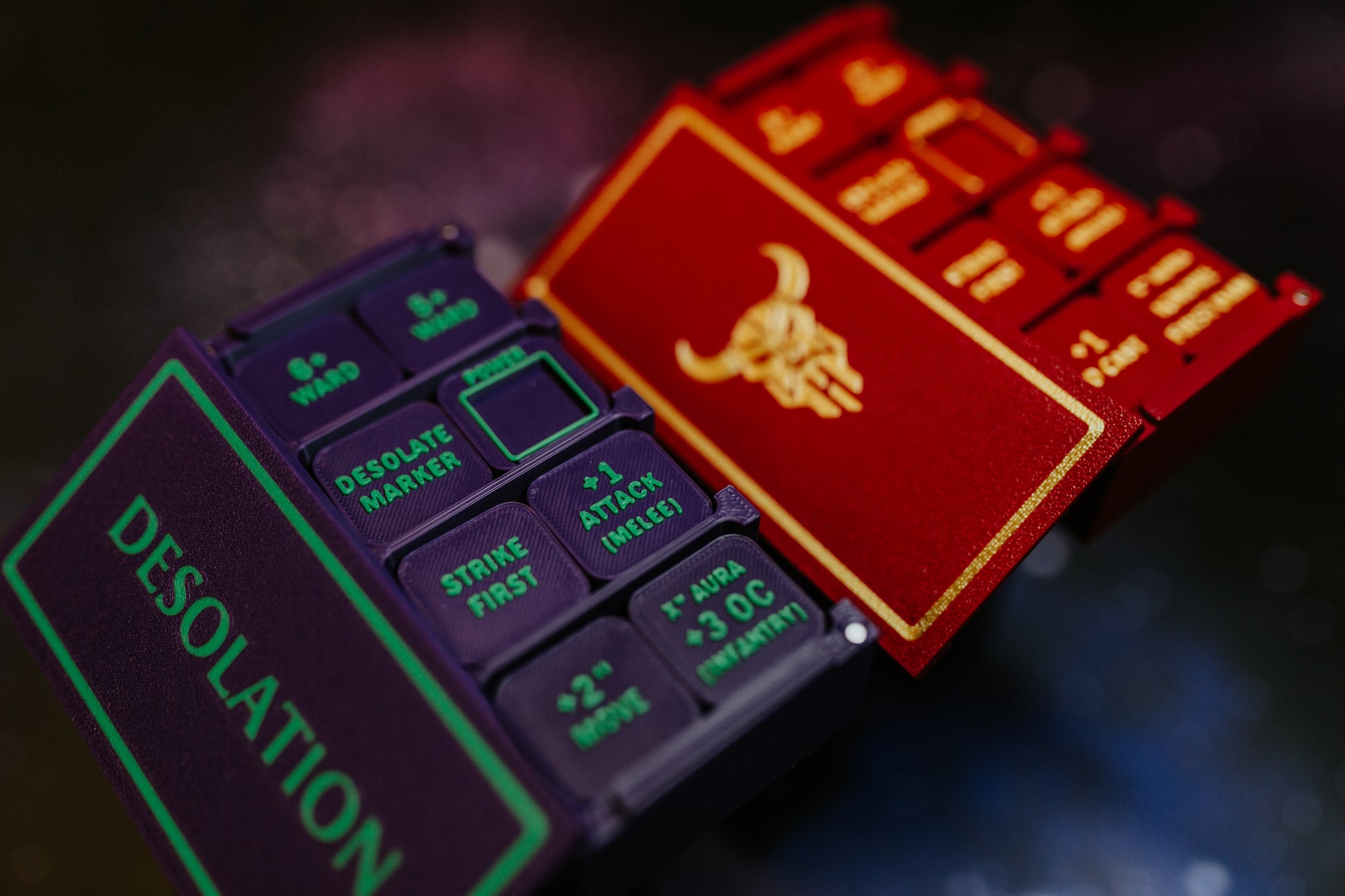 These products are independently designed and created for use with a range of tabletop miniature wargames. They are not affiliated with, endorsed by, or intended to replace any official products from any specific game company. These tokens are intended to assist players in tracking in-game effects and statuses, similar to using markers or notes. Rulebooks and other official game materials are still required for gameplay.