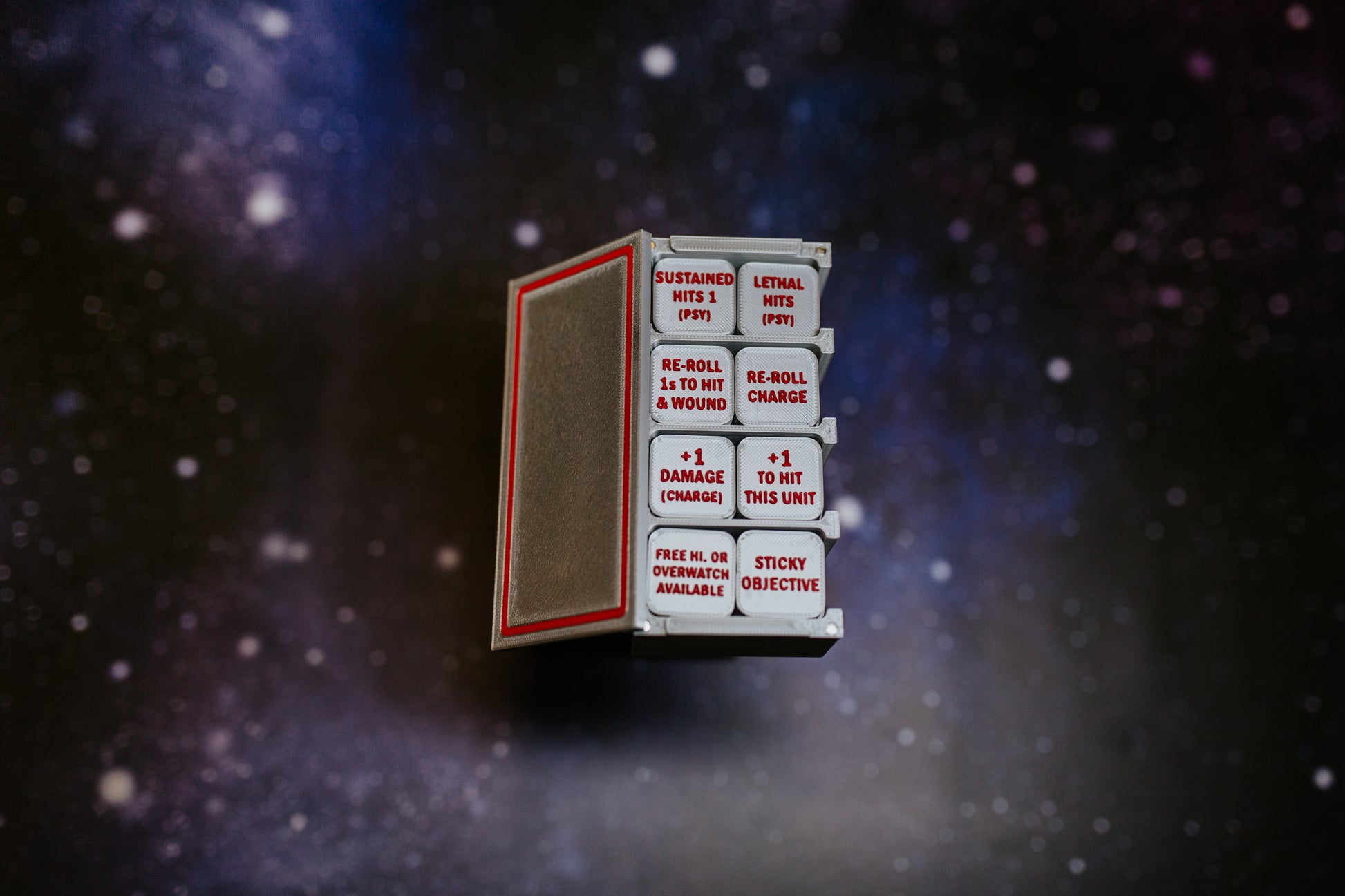 Each Silver Knights set includes a purpose-built magnetic storage box designed specifically for these 60 tokens. The secure magnetic closure keeps your tokens organized during transport and ensures quick access during gameplay - perfect for managing psychic abilities!