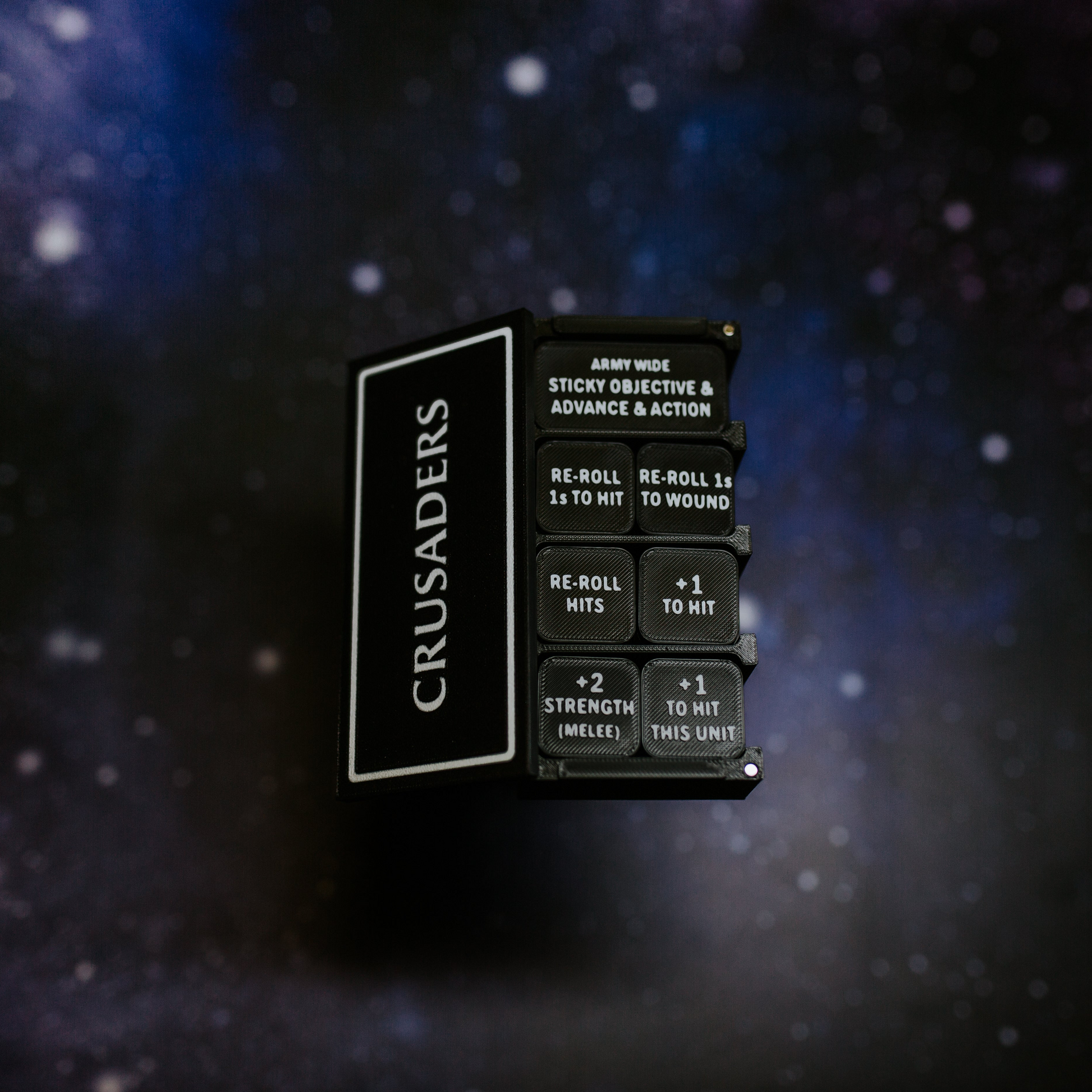 Each Templar Brothers set includes a purpose-built magnetic storage box designed specifically for these 40 tokens. The secure magnetic closure keeps your tokens organized during transport and ensures quick access during gameplay - perfect for managing sacred abilities!