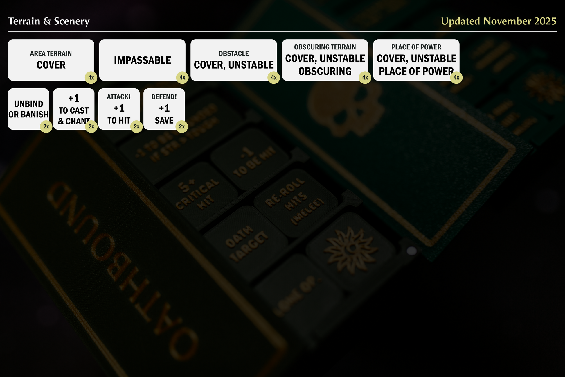 ✓ Special terrain (Unbind or Banish markers for magical terrain features)