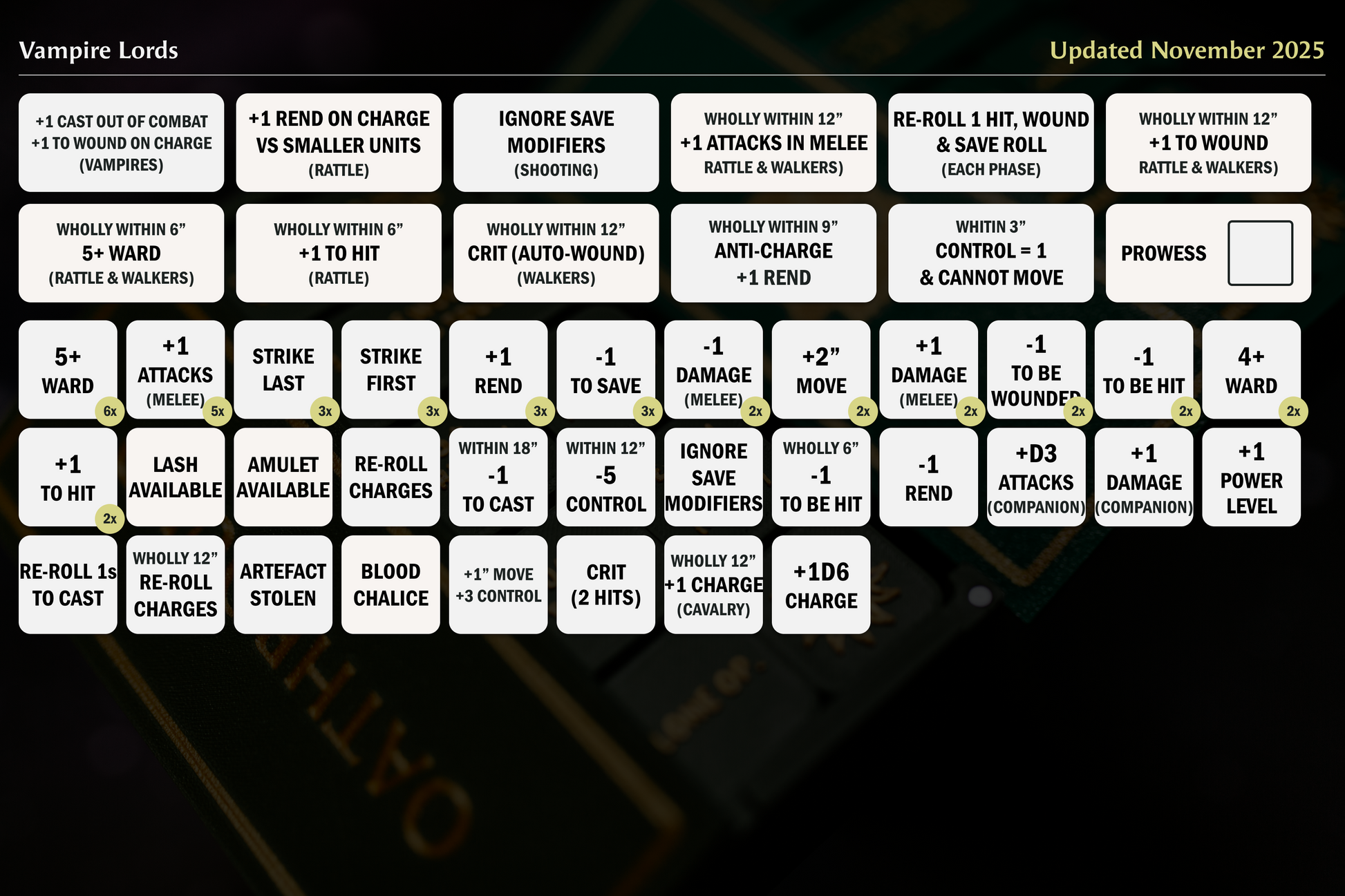 ✓ Vampiric abilities (Undead Lord Available, Blood Chalice, Prowess, Lash Available)